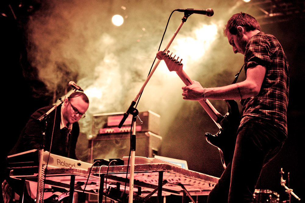 I know this might sound odd, but I don’t see the live show as a part of the art of making music; the art is in recording, as far as I’m concerned. I know that isn’t the case for every band, but I think it is for us. The show, for us, is a chance to do a shot or two, grab a beer, hop up on stage and make some cool noises for our lovely friends who are kind enough to come hang out with us that night. I think the most common thing people say about our live show is that it looks like we’re having a lot of fun, and they’re right.