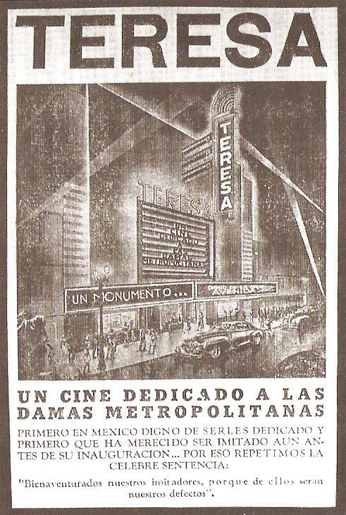 Cabe destacar que el cine Teresa fue concebido como un cine exclusivo para damas de alcurnia, afortunadamente esta idea fue desechada y el Teresa se convirtió en un cine familiar que todas las personas podían visitar, menos mal ¿no?