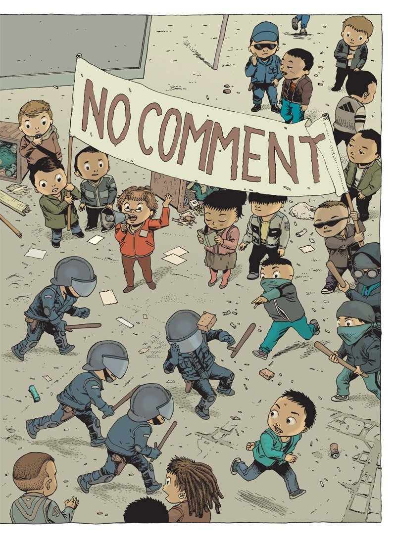 No comment es un libro perturbador, efecto que es difícil lograr en una época en que la violencia es un espectáculo acostumbrado. Hay una tensión entre la inocencia del trazo, las figuras humanas con rasgos infantiles o suaves, y el contenido de crueldad e indignidad de las historias. Pero me parece que el elemento que hace a Ivan Brun una lectura tan interesante es el lenguaje que usan los personajes.