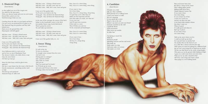 Pero mientras, bien o mal, podemos achacar al contexto histórico –a la presteza de los tiempos- del ropaje de Bowie, con Orwell solas se apuntalan sus decisiones estéticas. Son ejemplos la ingenuidad con que se describe el antiguo capitalista (“They owned everything that was there was to own. They lived in great gorgeous houses with thirty servants. […] they drank champagne, they wore top hats”) y el infantil miedo del protagonista a las ratas (“If you are falling from a height it is not cowardly to clutch at a rope. If you have come up from deep water it is not cowardly to fill your lungs with air. […] It is the same with rats. For you, they are unendurable”) de aquello que calcifica la obra de Orwell.