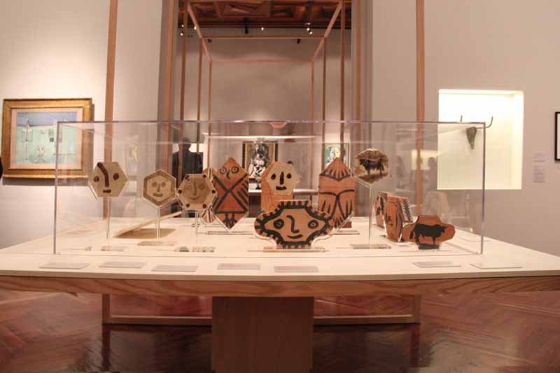 Las piezas nos muestran la exploración técnica que Picasso realizó en todo tipo de materiales, figuras y ángulos. Trabajó con oleo, bronce, azulejo, barro y le dio libertad al pincel y a sus manos para crear obras como La Guenon et son petit (La mona y su cría 1951), Tête (La cabeza 1957) y Hibou (Búho 1961).