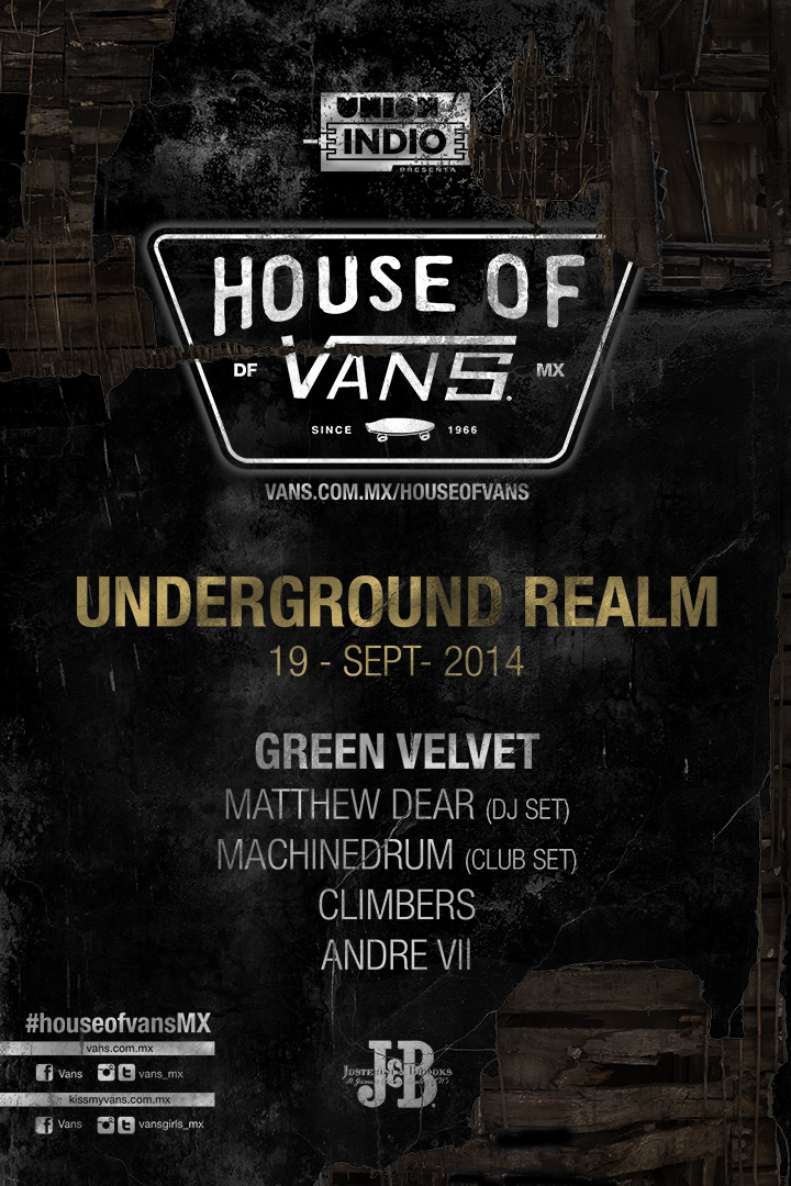 House of Vans México nos ha presentado tres carteles diferentes para su edición 2014. Kiss My Vans reúne a Chromeo, Disco Ruido! y Teen Flirt para la primera fecha programada el 18 de septiembre. Al día siguiente Underground Realm nos dejará oír a Green Velvet, Matthew Dear, Machinedrum, Climbers y Andre VII.