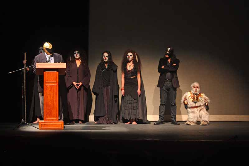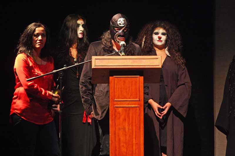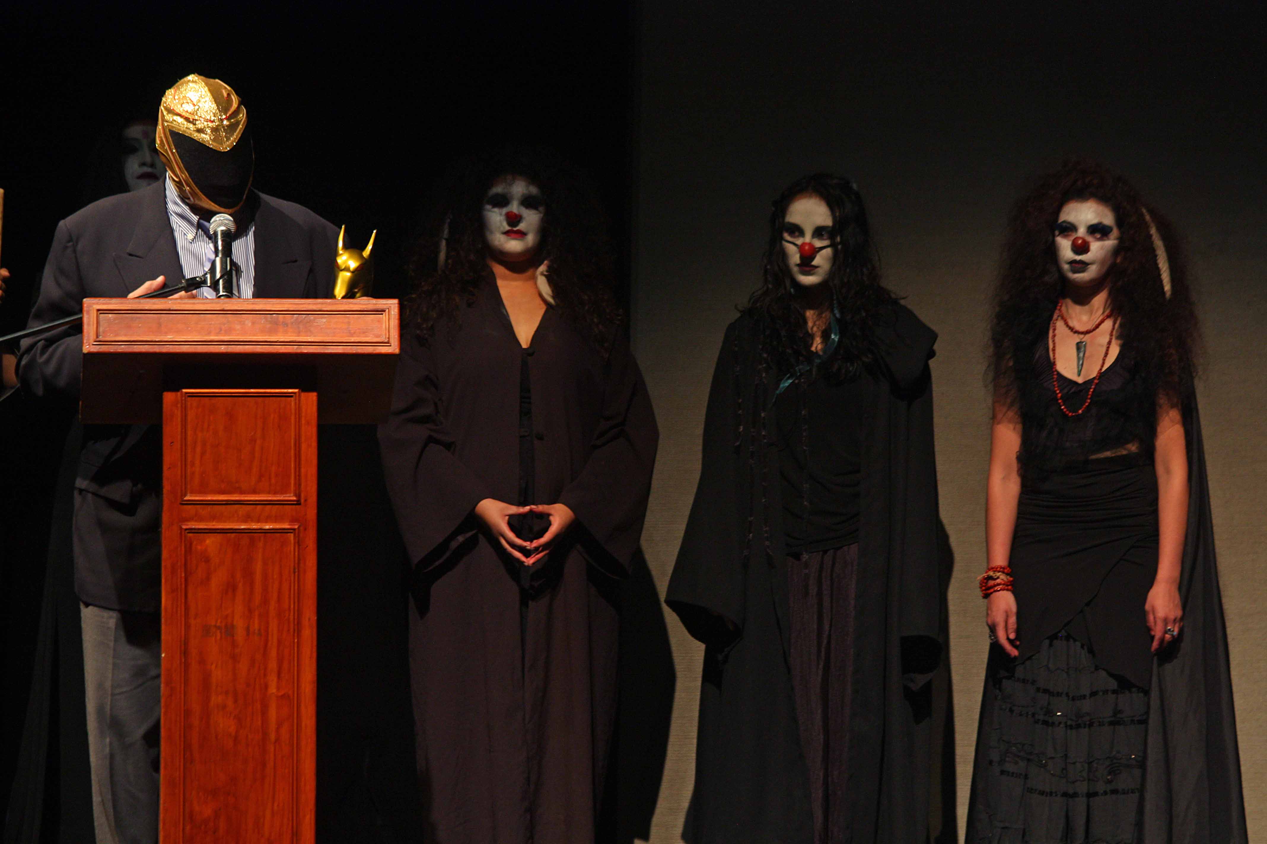 La inauguración dio inicio con un grupo de brujas que deambulaban entre los asientos mientras gritaban maldiciones y se retorcían como si estuvieran poseídas, al llegar al necesario terminaron el conjuro y el gran brujo del festival apareció en la pantalla; con ello, dio oficialmente por iniciada la treceava edición de Macabro.