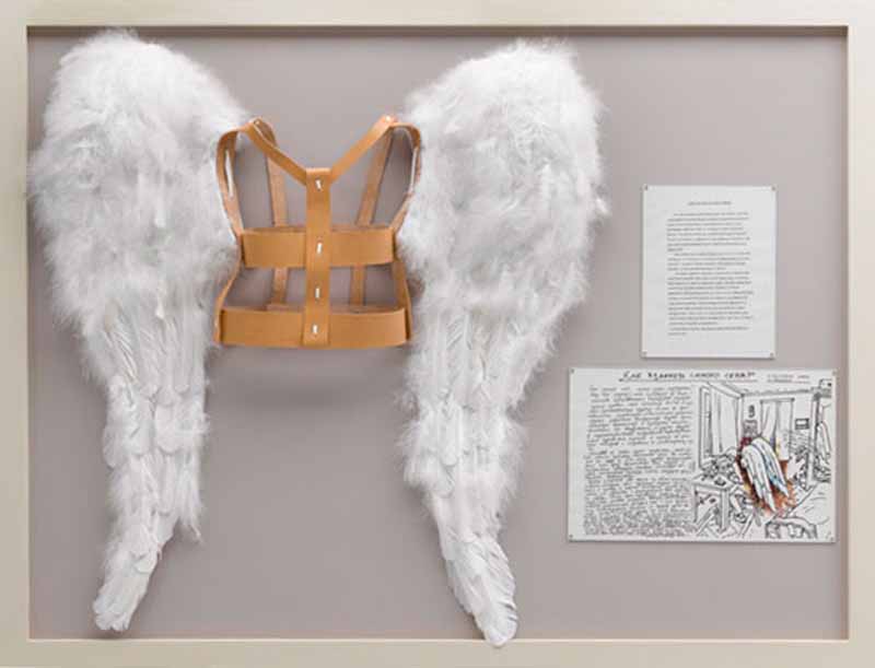 Cómo cambiarse a uno mismo, es otra de las piezas más impresionantes. A simple vista la obra nos presenta un arnés con un par de alas. Sencillo, piensas, te las pones e inmediatamente te conviertes en un ángel, pero es simplemente un disfraz. La obra nos habla de un anhelo profundo de pureza, de acercarnos al origen místico y divino. La melancolía invade cuando descubres la ironía, la burla y paradoja de esas alas falsas. Y sin embargo, qué goce de sentirnos diferentes, mejores, supremos.