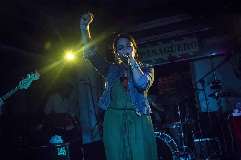 Una banda en vivo y un dj acompañaron esta noche la presentación de Ana Tijoux en el Pasagüero de la ciudad de México, donde no sólo escuchamos temas de su nuevo álbum, sino que también oímos tracks de sus producciones anteriores para hacer de este concierto un soundtrack para un viajero en el tiempo.