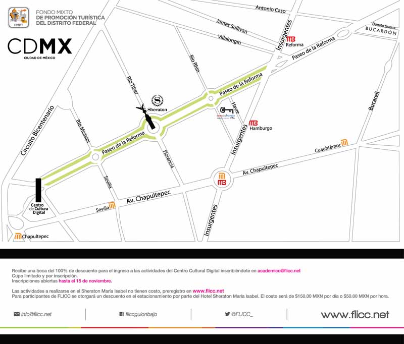 La primera edición de FLICC: Mercado Audiovisual Latinoamericano se realizará del 20 al 22 de noviembre en el Hotel Sheraton María Isabel, así como en el en el Centro de Cultura Digital Estela de Luz. En ambos lugares se reunirán distribuidoras, productoras y aspirantes a realizar o difundir sus proyectos cinematográficos en México.