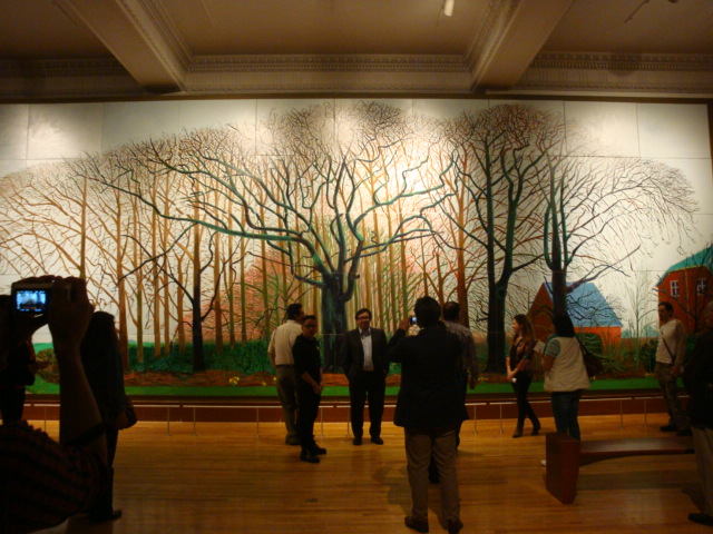 El carácter de su obra –que abarca la pintura, el grabado, la fotografía, y el diseño– señala a David Hockney como uno de los artistas vivos más influyentes del siglo XX. Por primera ocasión saldrá de Londres la pintura más monumental que haya plasmado el artista en un lienzo, la obra lleva por título Bigger Trees Near Warter Or/Ou Peinture Sur Le Motif Pour Le Nouvel Age Post-Photographique (Grandes árboles cerca de Warter o pintura sobre los motivos para la nueva era post-fotográfica). Esta pieza se compone por 50 lienzos de 90 x 92 cm., distribuidos en 5 por 10, cuyas medidas totales abarcan los 4.95 por 12.25 metros. Será la pieza central de la exposición “Landscapes of the Mind. Paisajismo británico. Colección Tate 1690-2007″, a exhibirse del 25 de marzo al 21 de junio próximos, en el Museo Nacional de Arte (Munal). El trabajo de David Hockney fue traído a la Ciudad de México en 1984 por primera vez, la exposición itinerante Hockney Paints the Stage se presentó en el Museo Tamayo Arte Contemporáneo. Esta exhibición se llevó a cabo después de la censura durante la Olimpiada Cultural de 1968 de una serie gráfica suya de desnudos. Durante esta primera visita a nuestro país, el artista viajó al estado de Oaxaca, allí creó una serie de pinturas y gráfica inspirada en el hotel en el que se hospedó, ubicado en Acatlán. La colección Tate resguarda en su acervo algunos materiales de esta serie. Este año es considerado como Año Dual México-Reino Unido, bajo este marco fue planeada la exhibición de este panorama cultural de la pintura británica, organizada por Tate en asociación con el Museo Nacional de Arte.