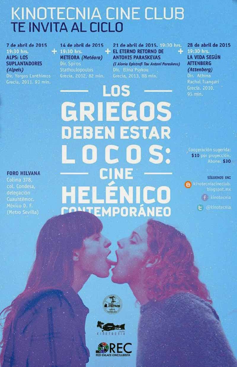 Por ello, Kinotecnia Cine Club proyectará todos los martes (8:00 p.m.) del abril su nuevo ciclo llamado “Los Griegos deben de estar locos” películas contemporáneas de Grecia, adentrándonos en las mentes de varios artistas y como es que ellos conciben su sociedad actual.