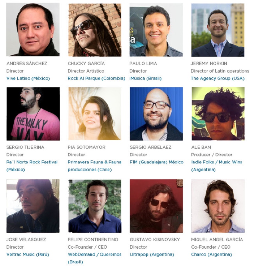 También estarán presentes Sergio Tijerina, director del Festival Pal Norte de la ciudad de Monterrey; Sergio Arbeláez, gerente y coordinador de contenidos de la Feria de Música de Guadalajara; Miguel Ángel García Garrido, fundador de Charco y representante de artistas Iberoamericanos desde hace 15 años; Fernando Heftye, representante de más de 80 bandas por medio de iAMusic México, entre muchos otros.