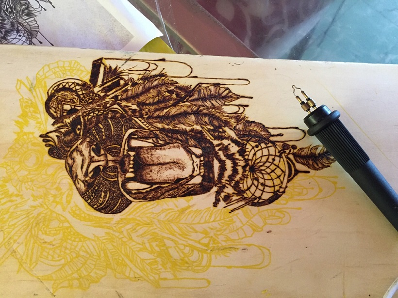 Este negocio funciona como los tatuajes, se te cotiza por la complejidad y el tamaño del diseño, así que todo depende de ti. Ellos te pueden conseguir la tabla y dártela nueva con todo y el pirograbado o está la opción de que lleves la tuya y ellos sólo te la rayan.