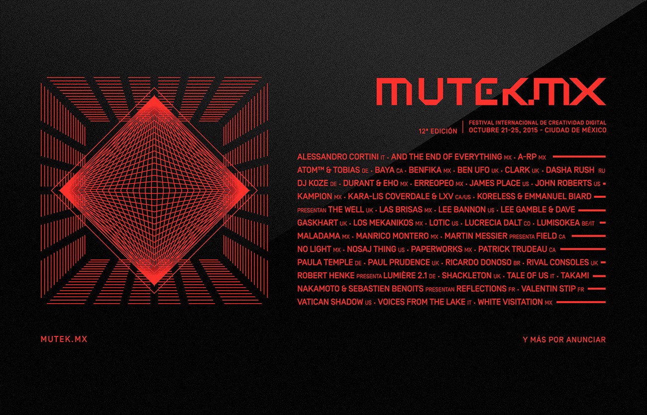 Aún falta tiempo para que empiece MUTEK México y ya se han agregado más artistas a esta edición que promete ser una de las más memorables en los doce años de vida del Festival, al tiempo que continúa con su oferta de propuestas arriesgadas, tanto en creatividad como en artes digitales.