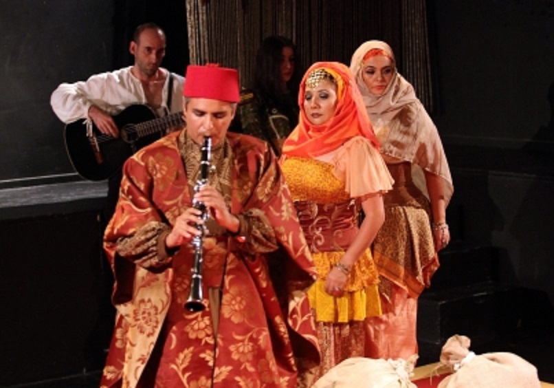La contraposición de creencias y culturas se manifiesta incluso en la manera en la que la música ameniza y acompaña esta puesta en escena: el clarinete, que pareciera encantar una cobra, discute con la guitarra española. Una cantante, diferente en cada representación, entona canciones de tradición árabe y judeoespañola, como “Yo m’enamori d’un aire”.