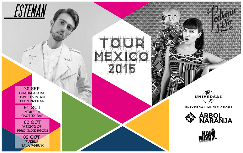 Dos exponentes de la nueva generación pop alternativa en español, Esteman + Pedrina y Rio, llegan a México con su gira “Colombia Love Tour”, donde Esteman nos dejará escuchar su segundo material titulado “Caótica belleza”, el cual cuenta con la colaboración de Natalia LaFourcade, Carla Morrison y la vocalista de Bomba Estereo, Li Saumet.todo al ritmo del disco ochentero y pop ecléctico.