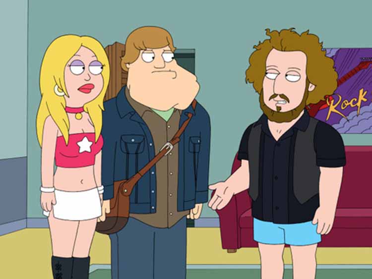 Finalmente, el capítulo concluye con una parodia de la película Almost Famous (Cameron Crowe, 2000). Stan encarna exactamente lo que William Miller –un adolescente que escapa de casa para seguir a un grupo de rock y convertirse en un periodista musical– hace. El efecto cómico está en la similitud y, a la vez, la discordancia. La mímica de las escenas de la película (Stan habla a casa como repetidamente sucede en Almost Famous; el agente viste un atuendo de los 70’s, etc.) acentúa el absurdo de la situación –del capítulo, de la serie en su totalidad–: un padre de familia, cuarentón, actuando como un niño.