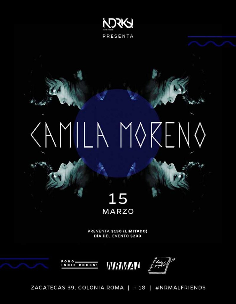 Después de realizar su presentación en el Festival NRMAL, Camila Moreno dará un show en uno de los recintos musicales más importantes de la ciudad para mostrarnos más de su trabajo construido a partir de una amplia gama de sonidos. La cita es el próximo miércoles 15 de marzo a partir de las 9 p.m.