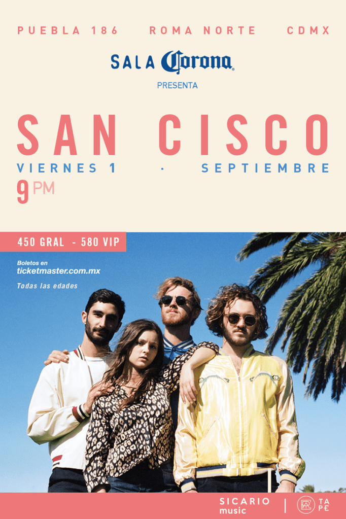 San Cisco se ha caracterizado desde su primer EP por darnos música que no falla en llenar de energía nuestros oídos. Ahora con el lanzamiento de su nuevo material titulado The Water, la banda australiana comenzará su gira The Water North America & Mexico Tour, en la cual están programados diversos conciertos en ciudades del país vecino y un show único en nuestro país a realizarse el próximo 1 de septiembre en Sala Corona.