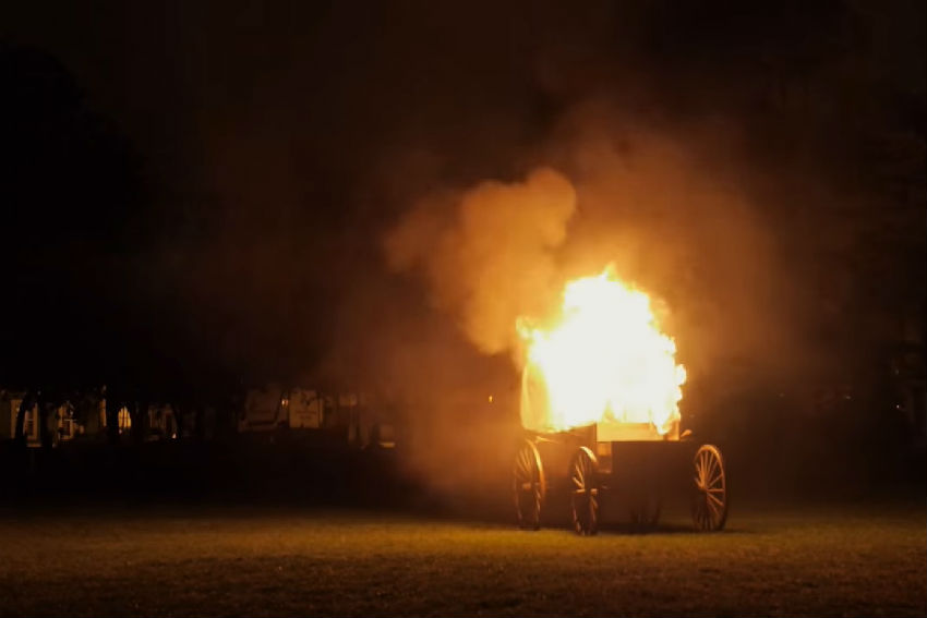 La cinta abre con su escena más poderosa: la durísima toma de la carreta en llamas en medio de la noche, sonorizada discretamente por los gritos agonizantes del pasado indígena en medio del exterminio, además del relinchar de los caballos. Tras la introducción, el resto de la cinta es plano, aunque a su vez demoledor si se observa como la difícil vida diaria de una comunidad marginada.