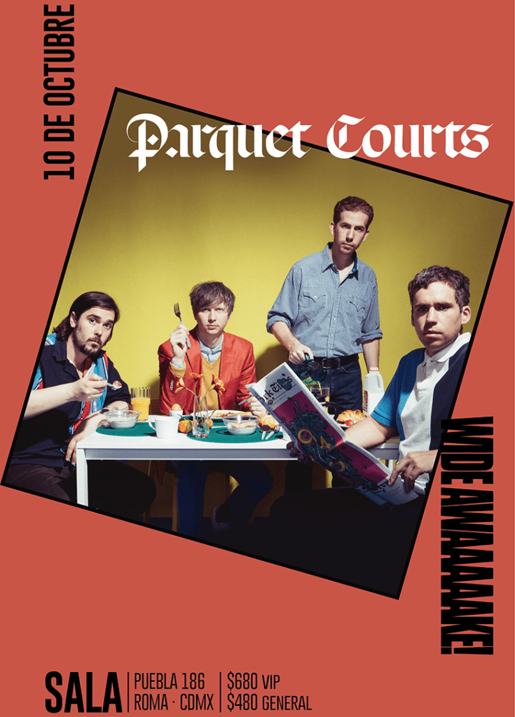 Entre las influencias que tuvo la agrupación neoyorkina para dar forma a Wide Awake!, se encuentran Grace Jones, The Upsetters, Townes Van Zandt, Parliament y Augustus Pablo. Si quieres escuchar en vivo este gran álbum, Parquet Courts se presentará en la CDMX el próximo 10 de octubre en Sala (Puebla 186, Roma. CDMX); los boletos tendrán un costo $480 General y $680 VIP. Puedes adquirirlos aquí: https://bit.ly/2zvPuLM