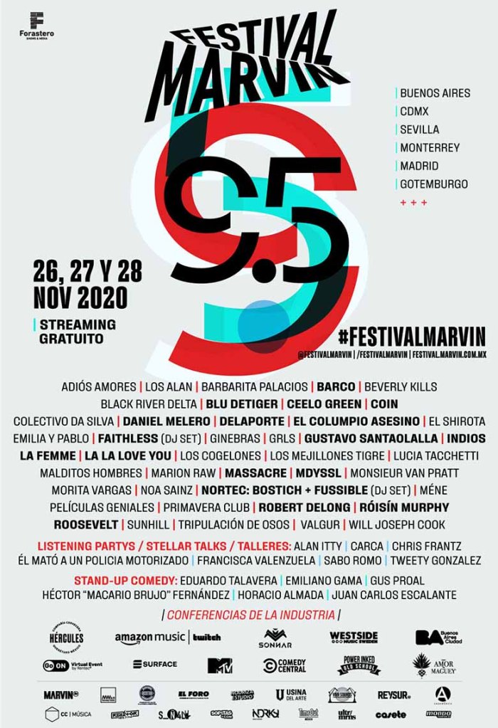 La edición 2020 de Festival Marvin llega en un nuevo formato para llenarnos de música a la distancia. Se realizará los próximos 26, 27 y 28 de noviembre y nos presentará a diversos artistas en 6 escenarios distribuidos en varias ciudades del mundo: Buenos Aires, CDMX, Monterrey, Sevilla, Madrid y Gotemburgo.