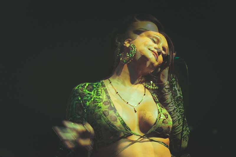 Después, un breve intermedio preparó al público que, desesperado, aprovechó la pausa para ir por algún trago, pasar al sanitario, a fumar o a encontrarse con sus amigxs para no perderse ni uno solo de los detalles del show. Las luces se apagaron por completo y apareció la youtuber y artista del drag, Amelia Waldorf para presentarnos el plato principal: Zemmoa.
