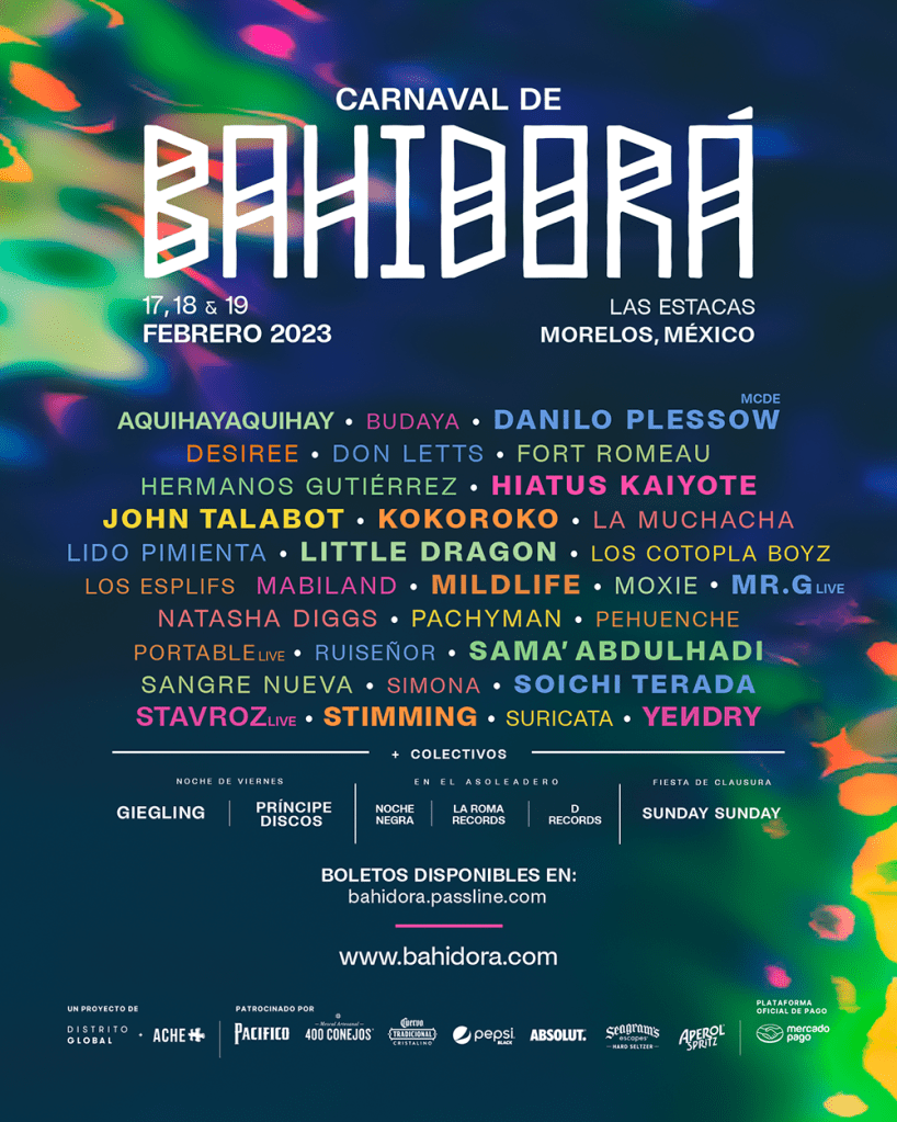 En esta ocasión, los organizadores han reunido a mucho talento que aportarán mucha diversidad sonora al carnaval. Por un lado tenemos a artista mexicanos como AQUIHAYAQUIHAY (uno de los colectivos de rap y R&B contemporáneo más interesantes de los últimos años), Budaya y Ruiseñor, pero también tenemos mucho talento latino.