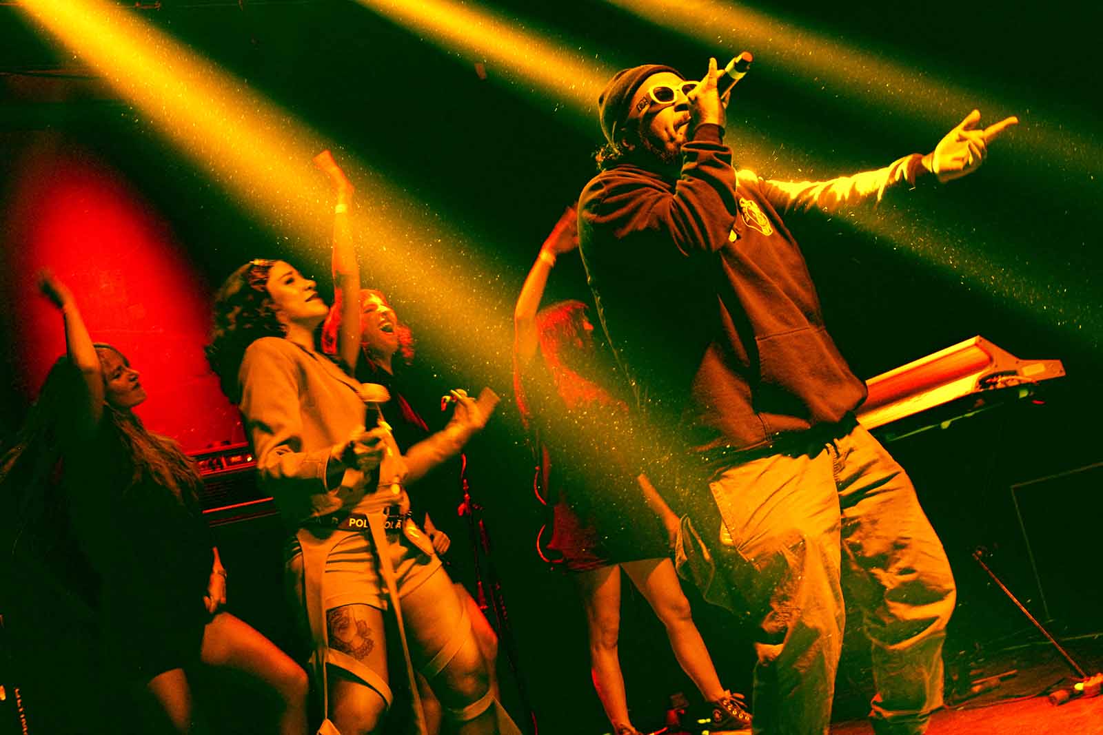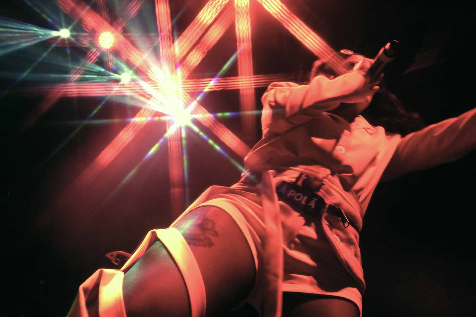 La noche del viernes 12 de mayo, inició con el “performance introvertido” de Cuauh, quien nos puso a todes a bailar con su estilo de perro-trapero-rabioso: letras llenas de frustración, sonidos bien locos y movimientos extravagantes.
