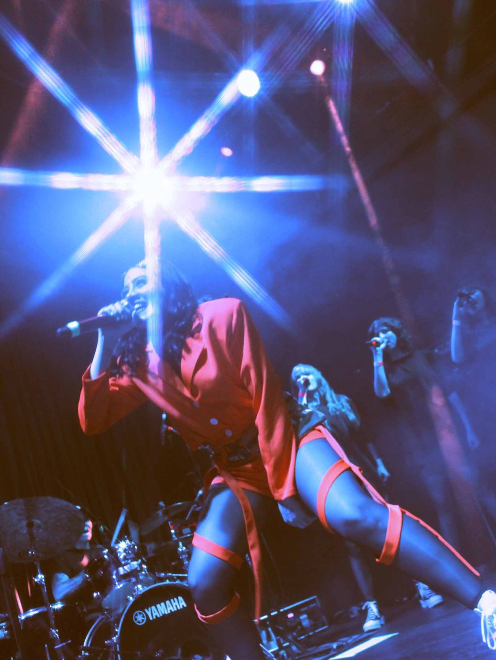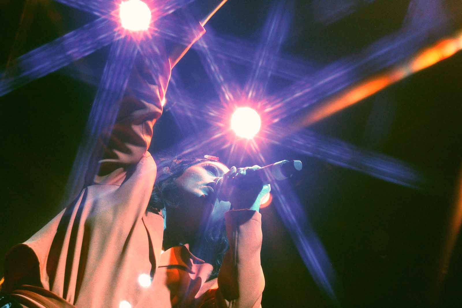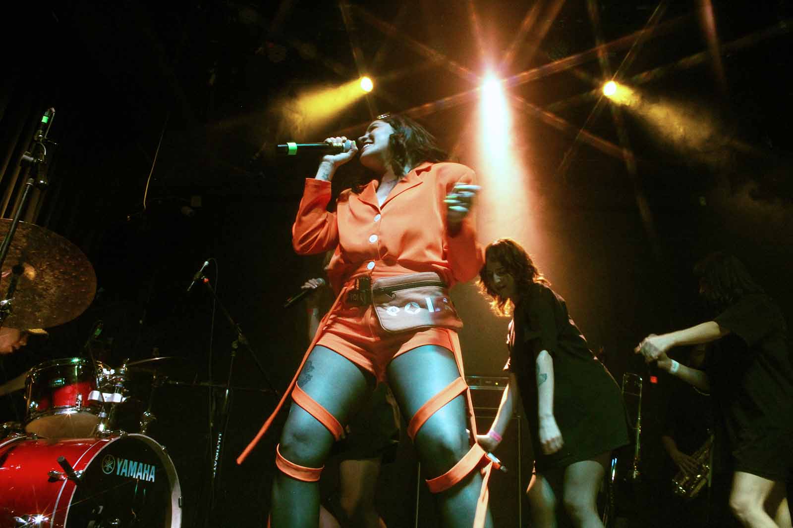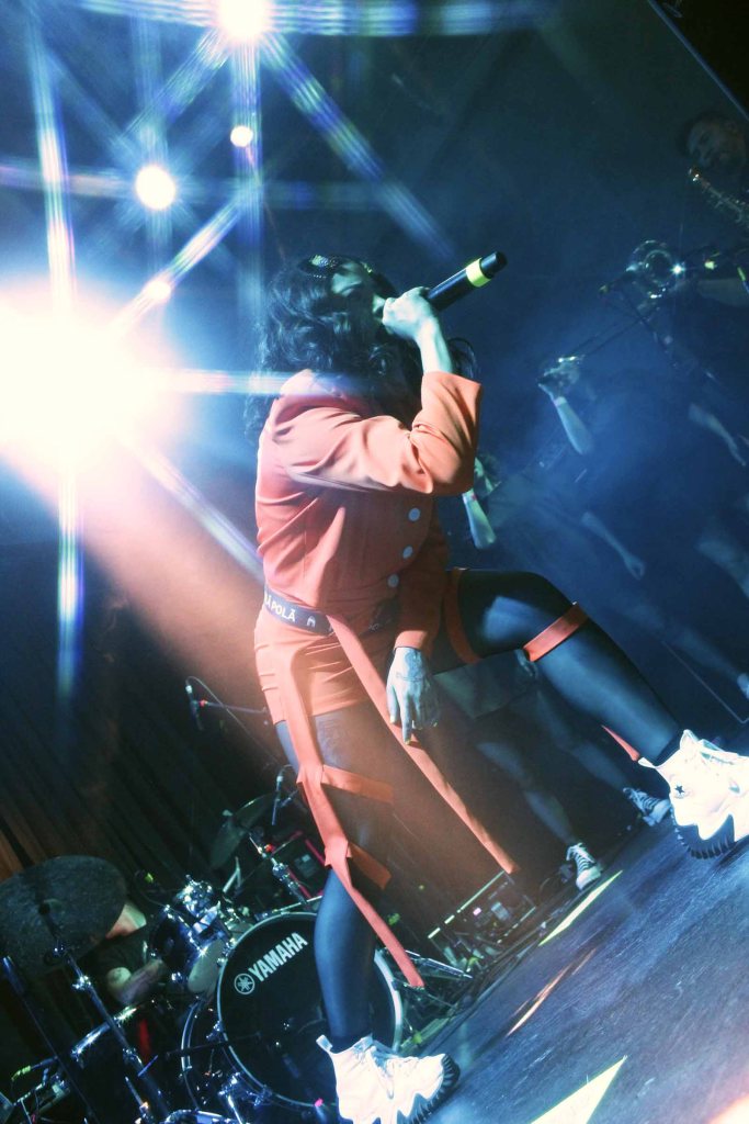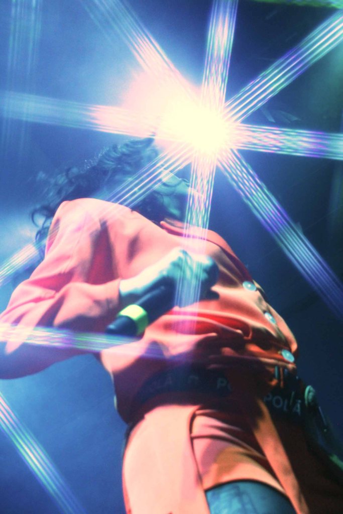 Acompañada de un baterista lleno de energía, tres hermosas coristas y bailarinas, y un par de músicos de viento, la protagonista de aquella noche fue hilvanando un concierto lleno de sonidos electrónicos experimentales fundidos con su potente y eléctrica voz.