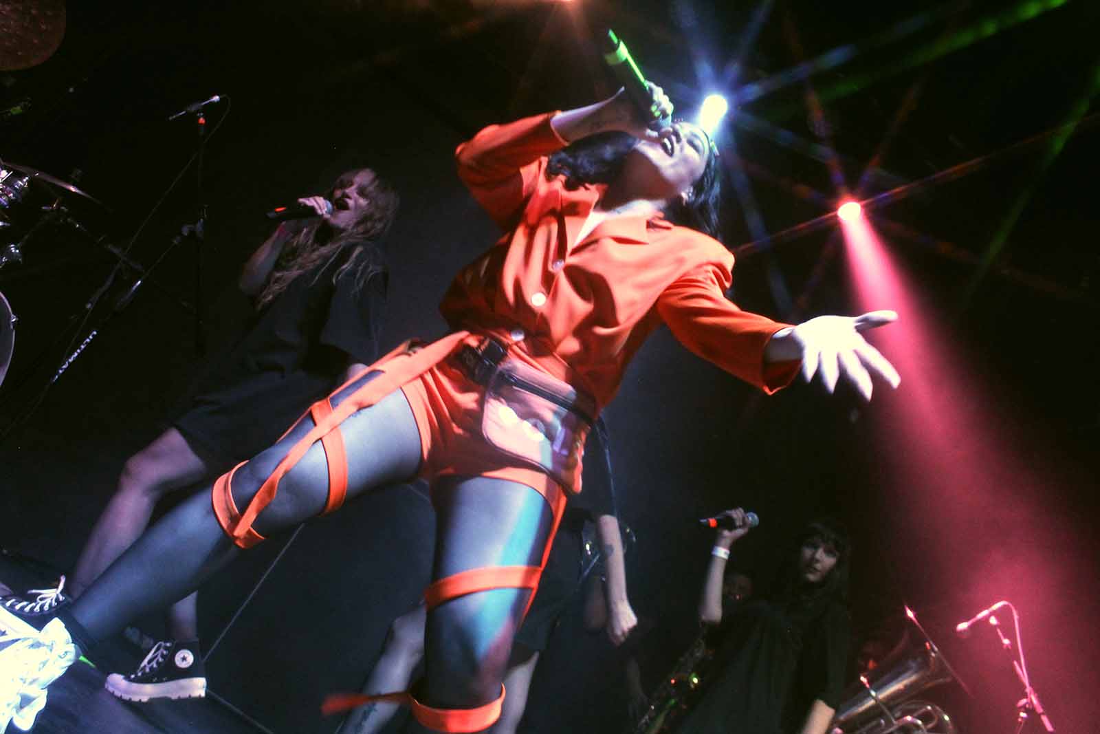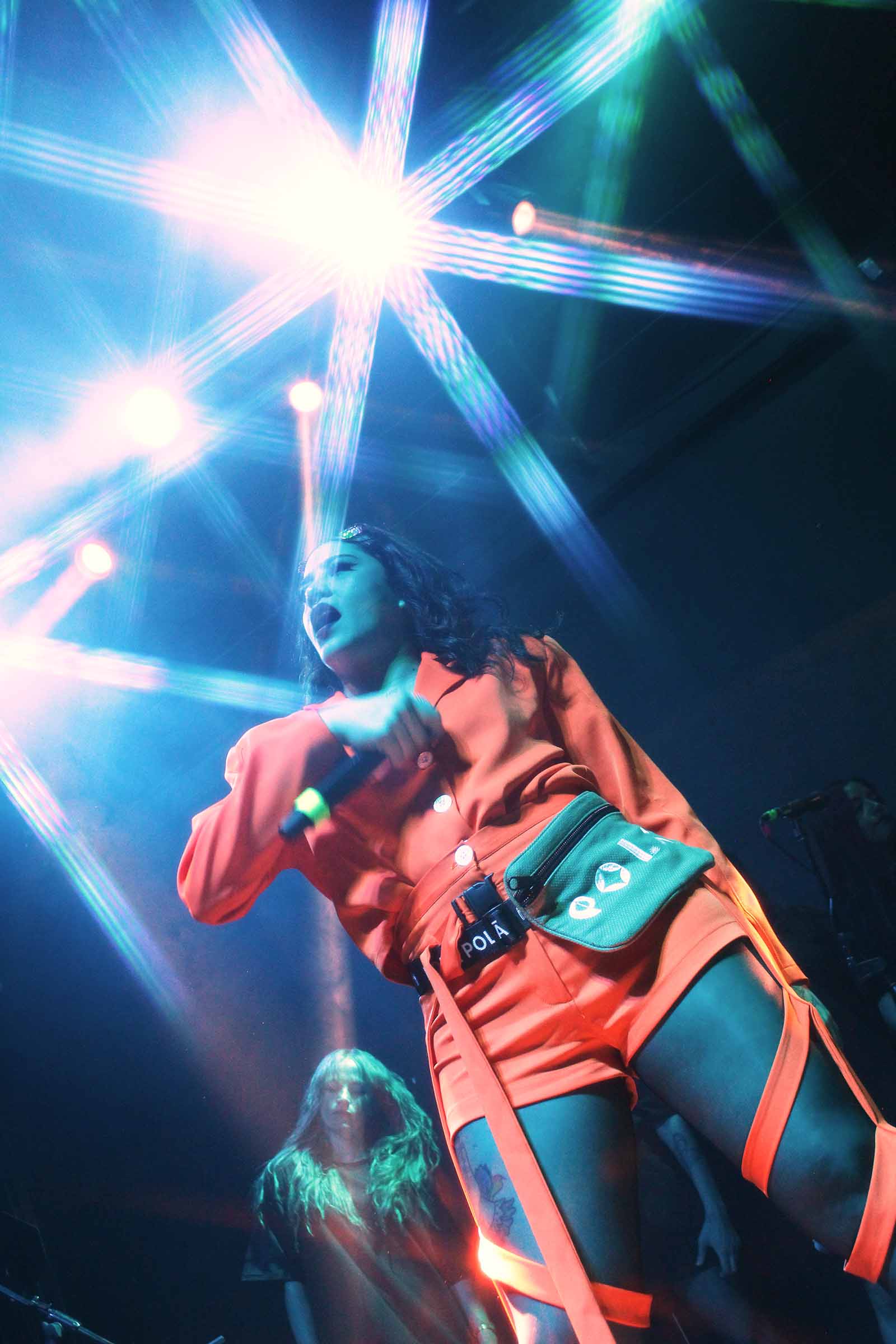 No pasó demasiado tiempo cuando brilló en el escenario la estrella de la noche: GRTSCH. Vestida con un atuendo naranja y con un diseño muy acorde a su propuesta sonora, la artista iluminó un venue repleto de sus seguidores.