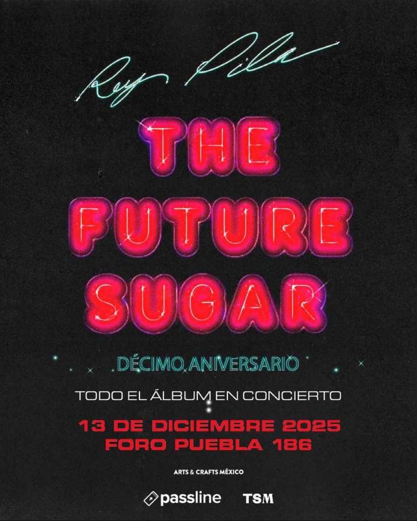 Para celebrar los 10 años de su álbum “The Future Sugar”, Rey Pila dará un concierto el próximo 13 de diciembre en el Foro Puebla de la Ciudad de México. Así que no te pierdas de este concierto donde de conmemorar a uno de los álbumes más llamativos de la escena alternativa de nuestro país.