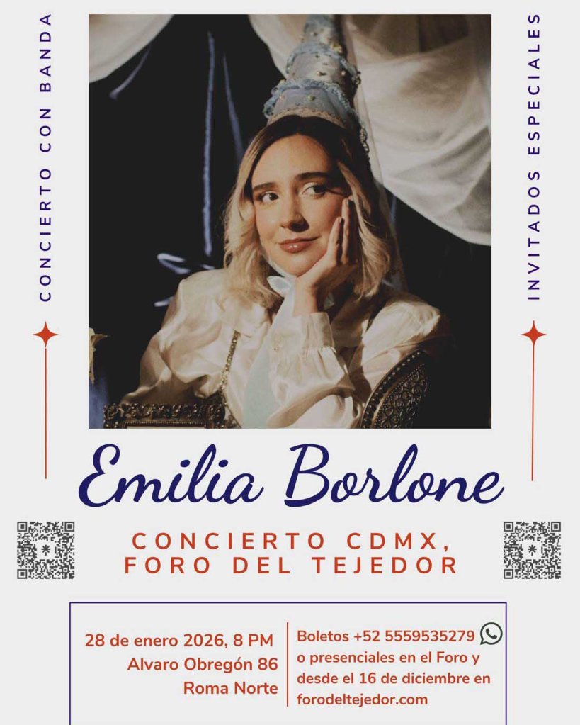 Como antesala al lanzamiento de su próximo álbum, Emilia Borlone realizará un concierto con banda completa en el Foro del Tejedor de la Ciudad de México. Si eres fan del pop alternativo, entonces aparta el próximo 28 de enero y únete a la artista chilena radicada en nuestro país.